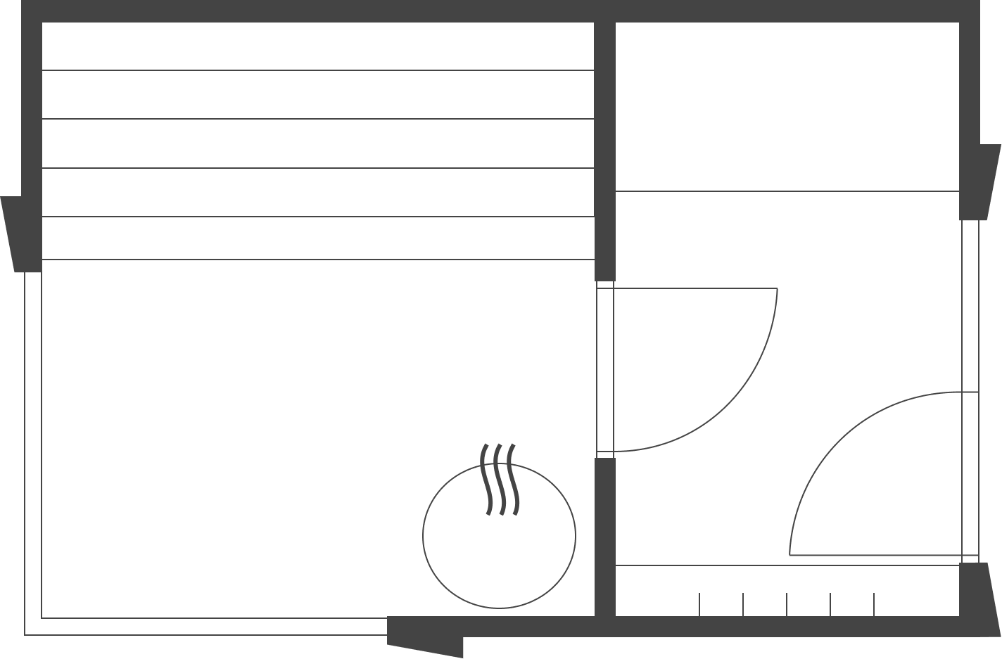 Our most compact fully functional modular sauna with a small anteroom and a spacious sauna room.