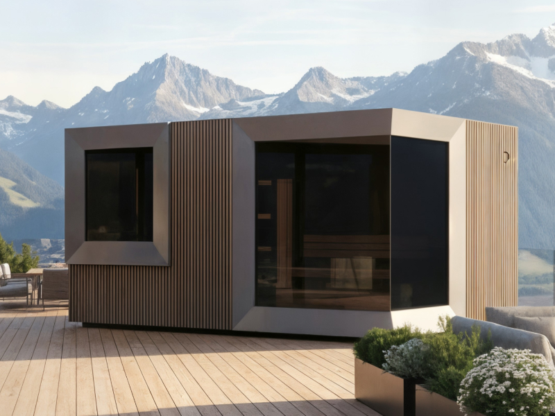 Zermatt is our most compact, fully equipped sauna, crafted for those who appreciate a luxurious design in a smaller space. Designed with a cozy lounge and a spacious 4 m² sauna room, it offers a complete wellness experience in just 7.25 m². Built from durable, sustainable CLT wood and finished with high-end details like thermoalder seating and Buster + Punch details from London, Zermatt blends Nordic minimalism with everyday comfort. Whether set by a lake, nestled in the woods, or in your own backyard, it’s a quiet space to slow down and feel good.